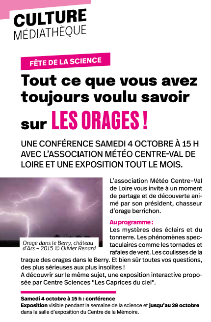 Nous parlerons des coulisses des chasses à l’orage dans le Berry et bien entendu, nous répondons à toutes vos questions.