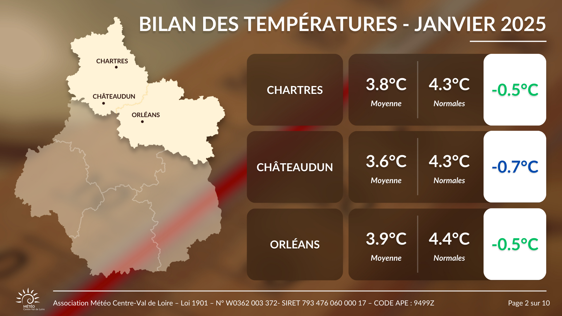 - Les habitants de Châteaudun ont connu un mois de janvier plus frais que la normale. En effet, la température moyenne de 3.6°C correspond à celle d’un mois de janvier à Troyes (10).