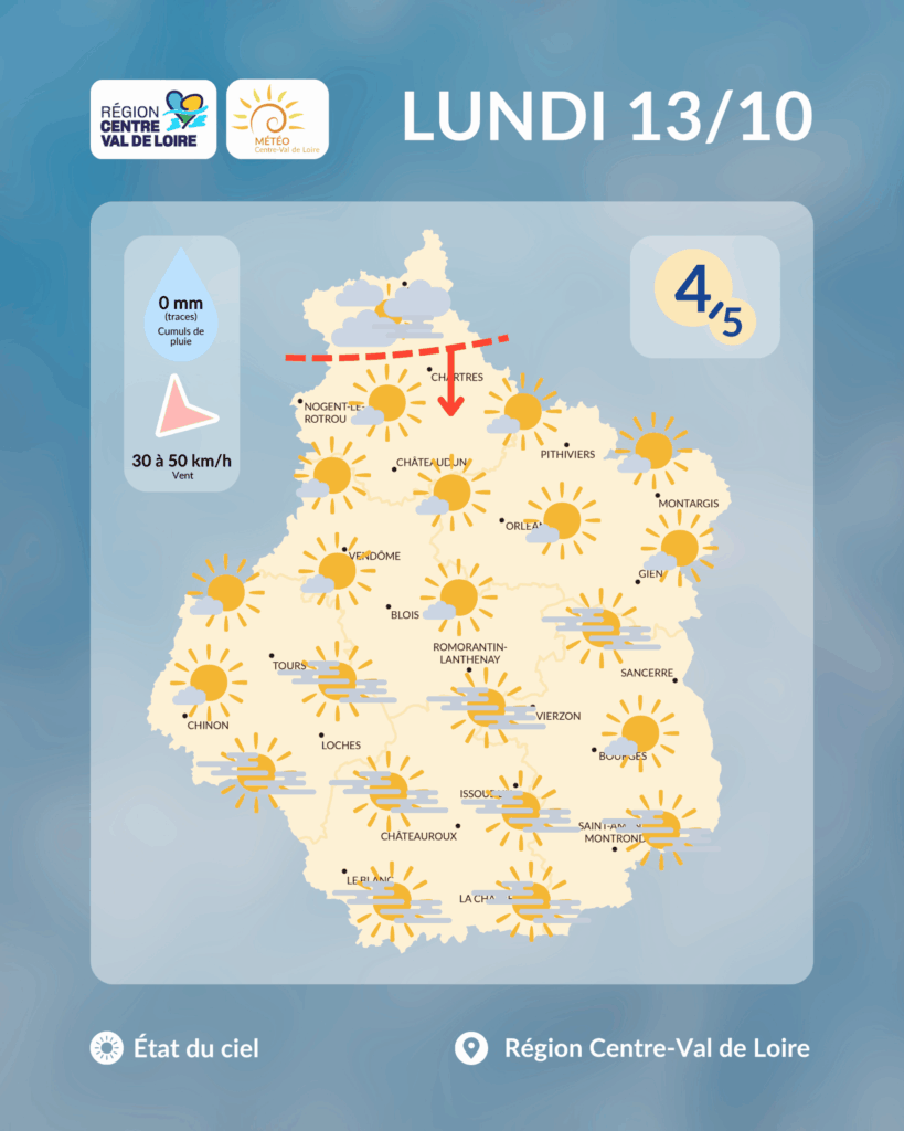 Vers une semaine du 13 au 19 octobre 2025 calme et sèche sur le Centre – Val de Loire avec un ciel partagé entre brouillards et soleil, sous un vent continental frais !
