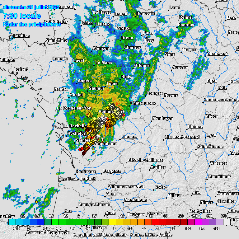 Dès le midi, ces phénomènes électriques ont quitté notre région. Toutefois, on a enregistré très localement quelques impacts de foudre en Touraine au cours de l’après-midi.