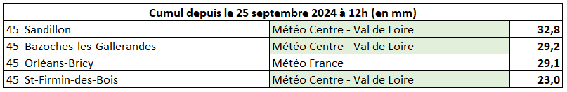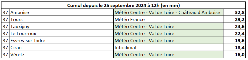 Depuis le mercredi 25 septembre 2024, un copieux arrosage est observé sur notre région Centre – Val de Loire… Voici un bilan provisoire !