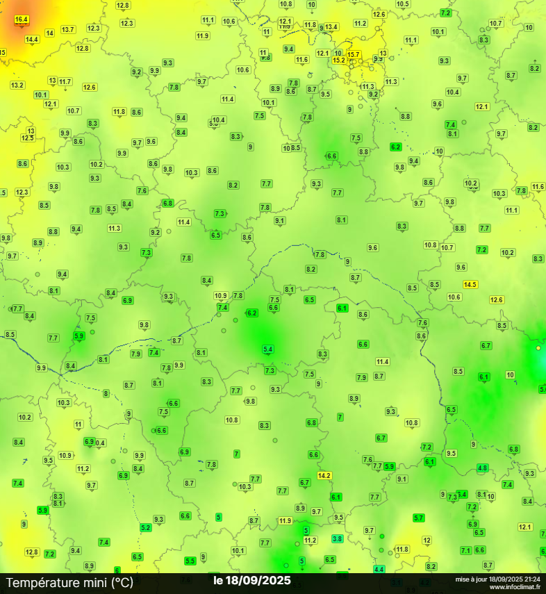 L’amplitude thermique est remarquable avec bien souvent plus de 20°C d’écart. Localement, on relève jusqu’à plus de 25°C entre les minima et maxima d’aujourd’hui.