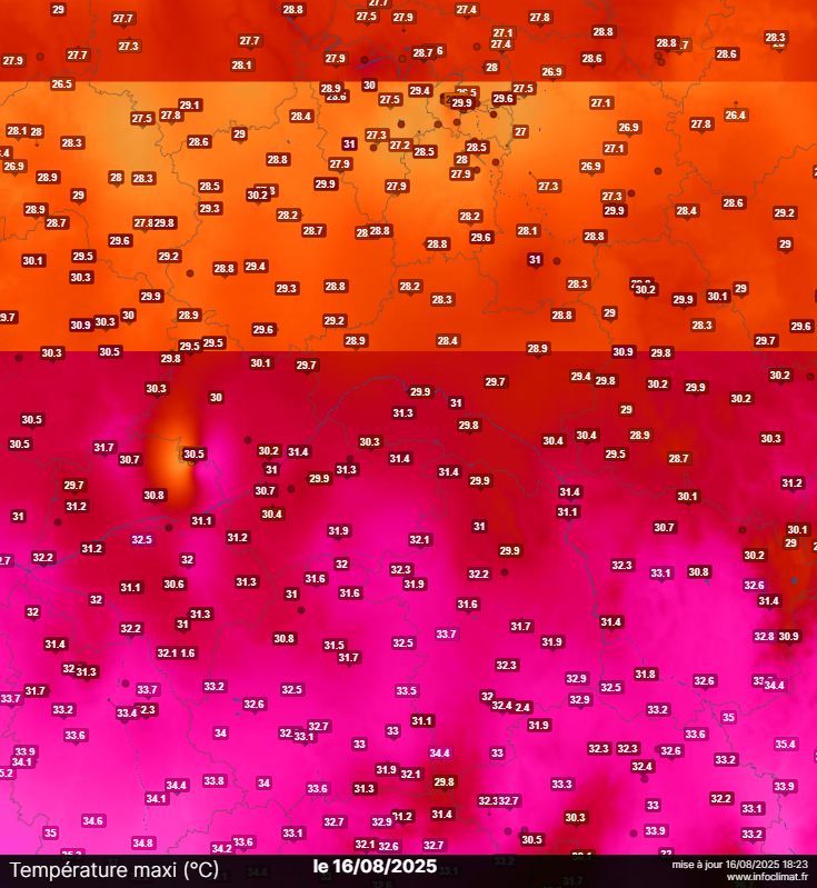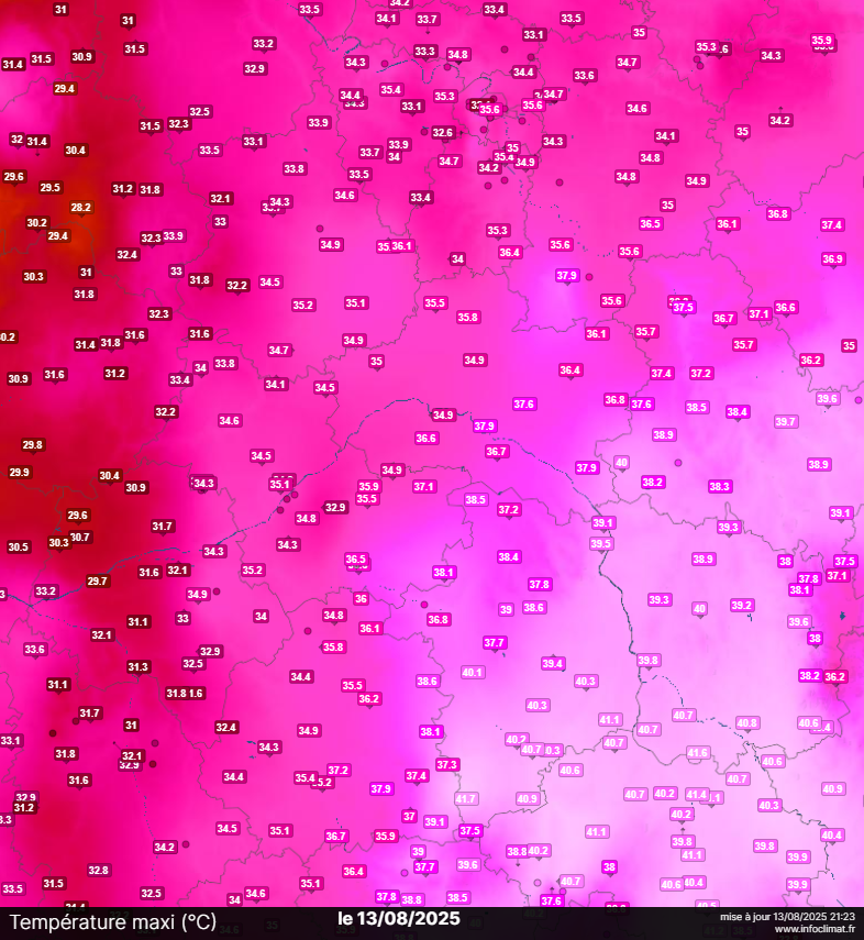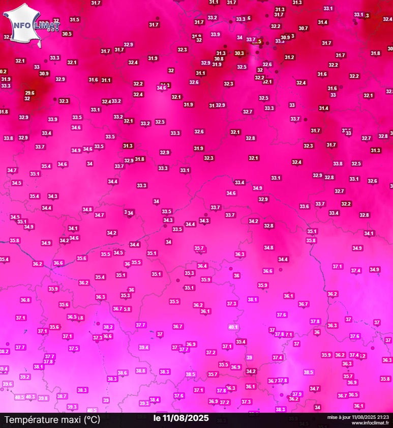 - Villeguin (36), Ciran (37) – Infoclimat et Langé – Infoclimat (36) : 36.1°C