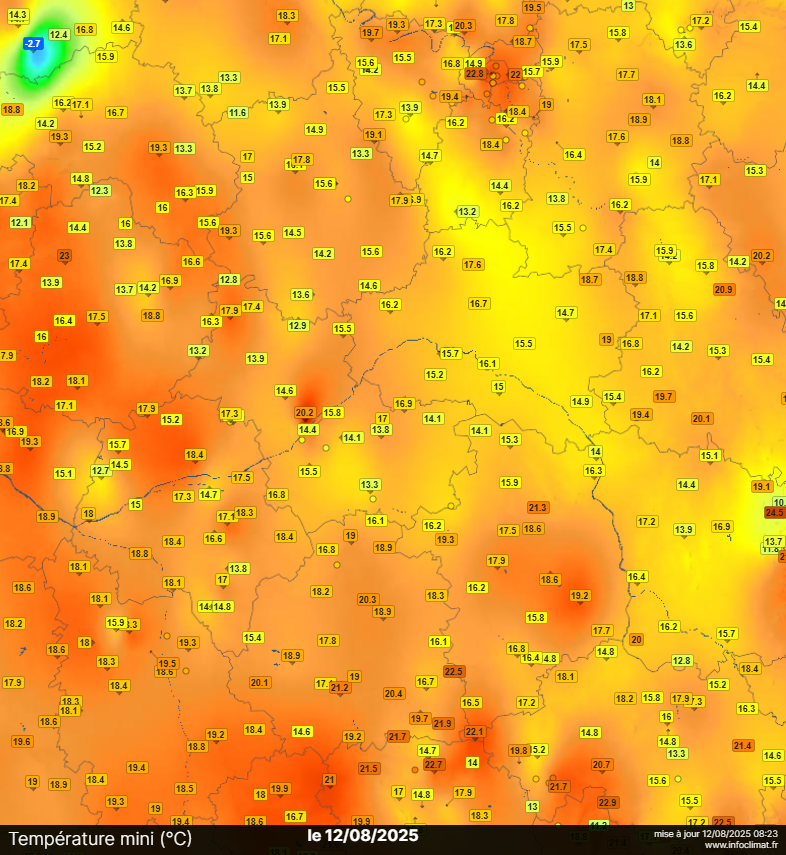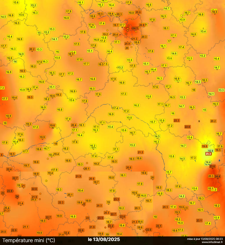 Suivi des minima et des maxima du mercredi 13 août 2025