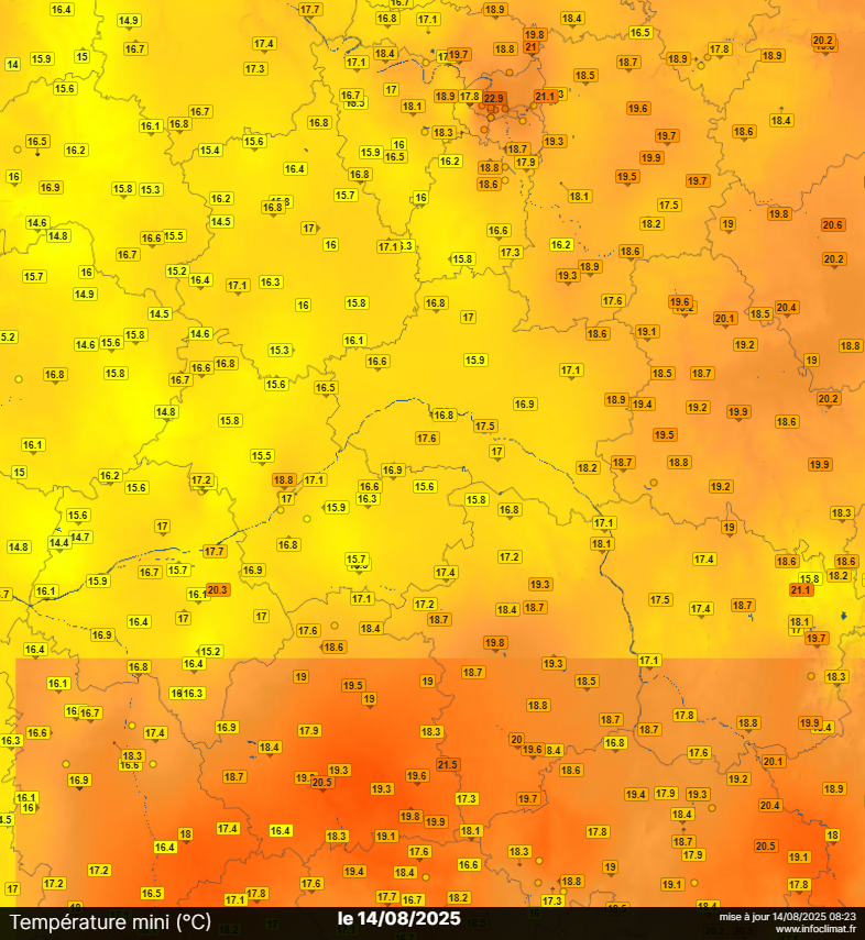 Suivi des minima et des maxima du jeudi 14 août 2025