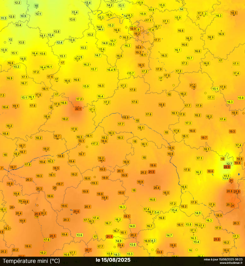 Suivi des minima et des maxima du vendredi 15 août 2025