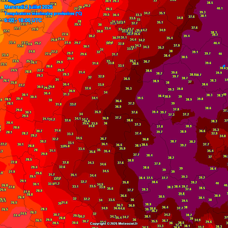 - 39.3°C à Saint-Florent-sur-Cher (18)