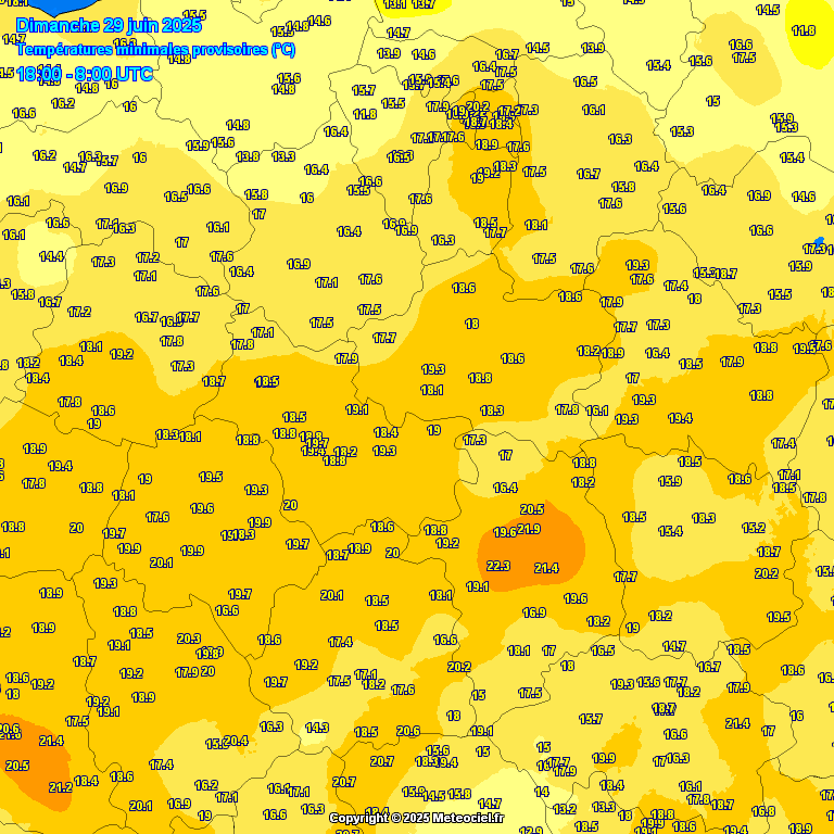 Suivi des minima et de la chaleur au cours de ce dimanche 29 juin 2025