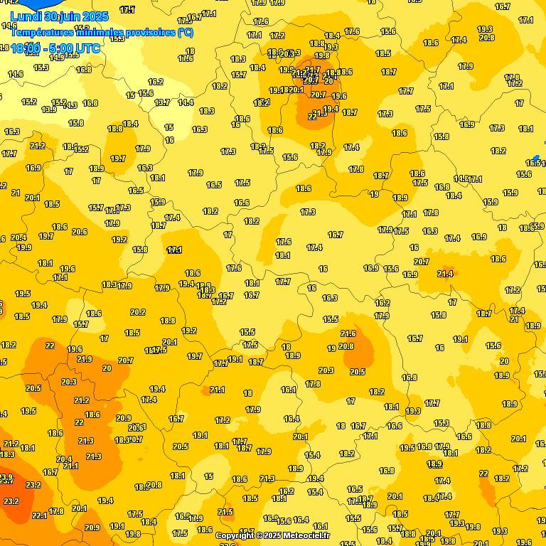 Suivi des minima et des maxima du lundi 30 juin 2025