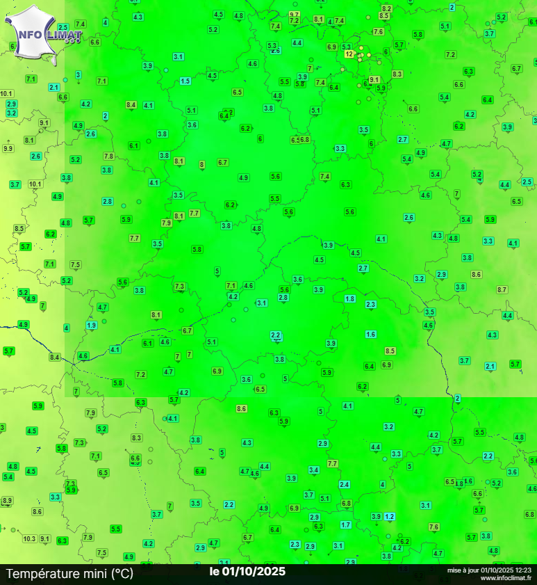 Températures minimales du 1er octobre