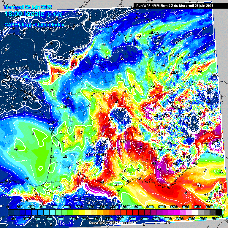 Figure 4 : Prévision du modèle France WRF NMM 2 km de la CAPE et LI, https://www.meteociel.com